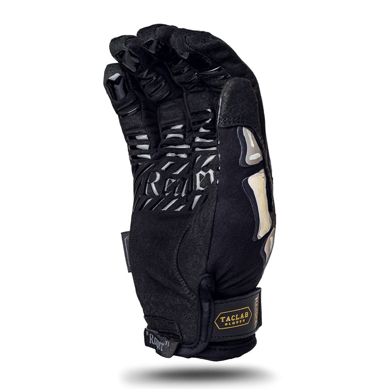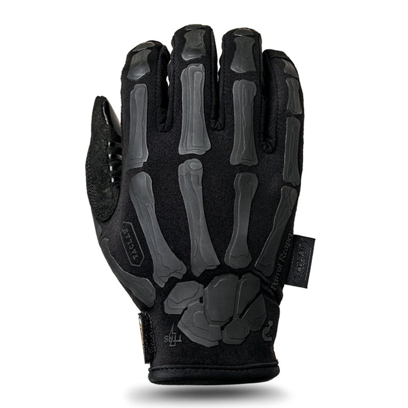 La impresión de esqueleto en el dorso de la mano de los guantes Patrol Reaper de tamaño XXL se diferencia de otros tamaños: este tamaño presenta un diseño de esqueleto de menor visibilidad.
